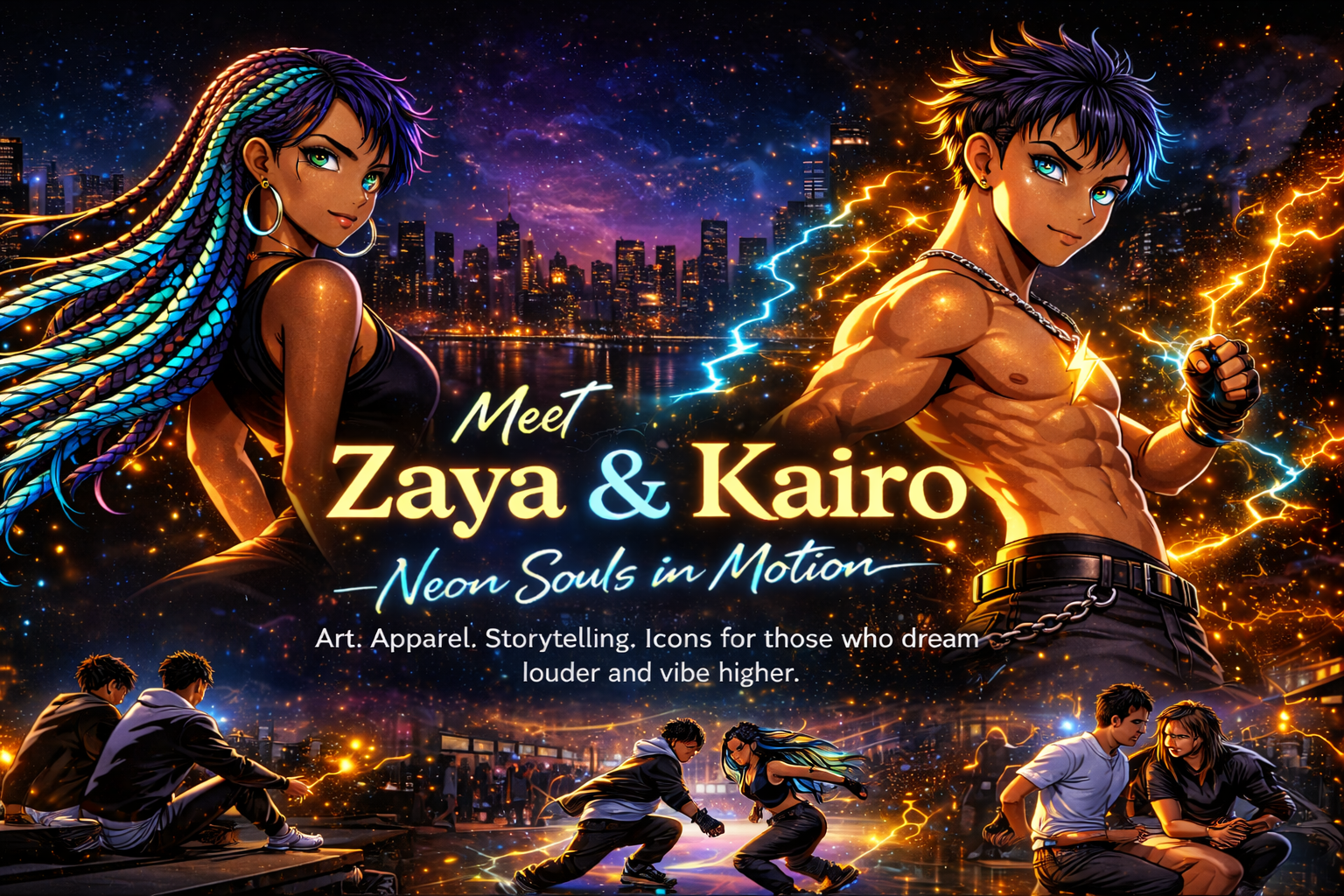 Glow Collection – Zaya & Kairo Neon Art, Apparel & Posters | 2026
